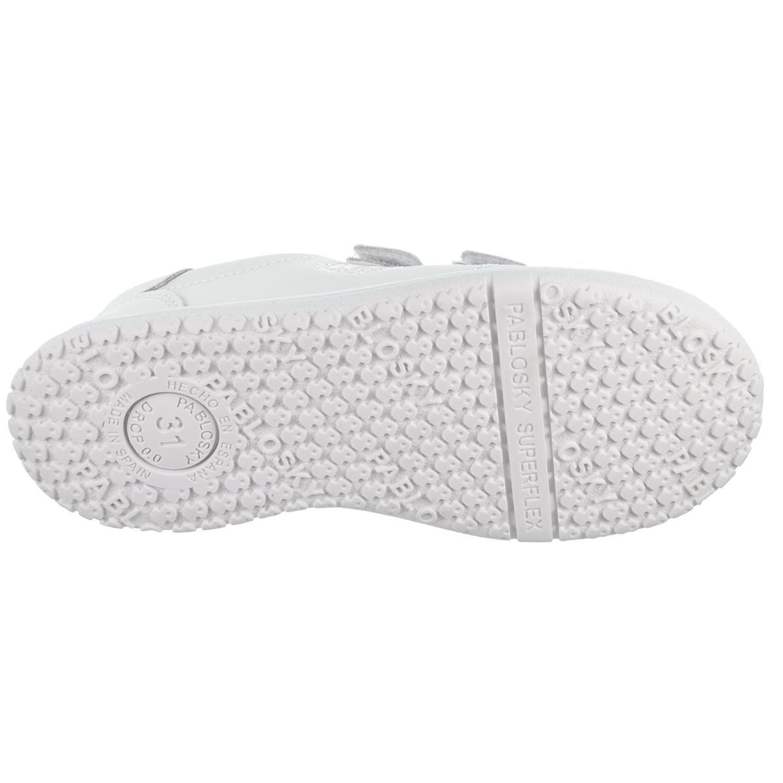 200000 Pablosky Deportivo piel, forro interior sin costuras intech en microfibra ecológica, plantilla fisiológica extraíble y doble velcro ajustable. Piso de goma antideslizante y alta resistencia, incorpora las exclusivas tecnologías SUPERFLEX que favorece la flexión del pie, y AIRBAG amortiguador de pisada. Fabricados en España, avalados por expertos podólogo. Un diseño versátil, ideales por su durabilidad y confort.