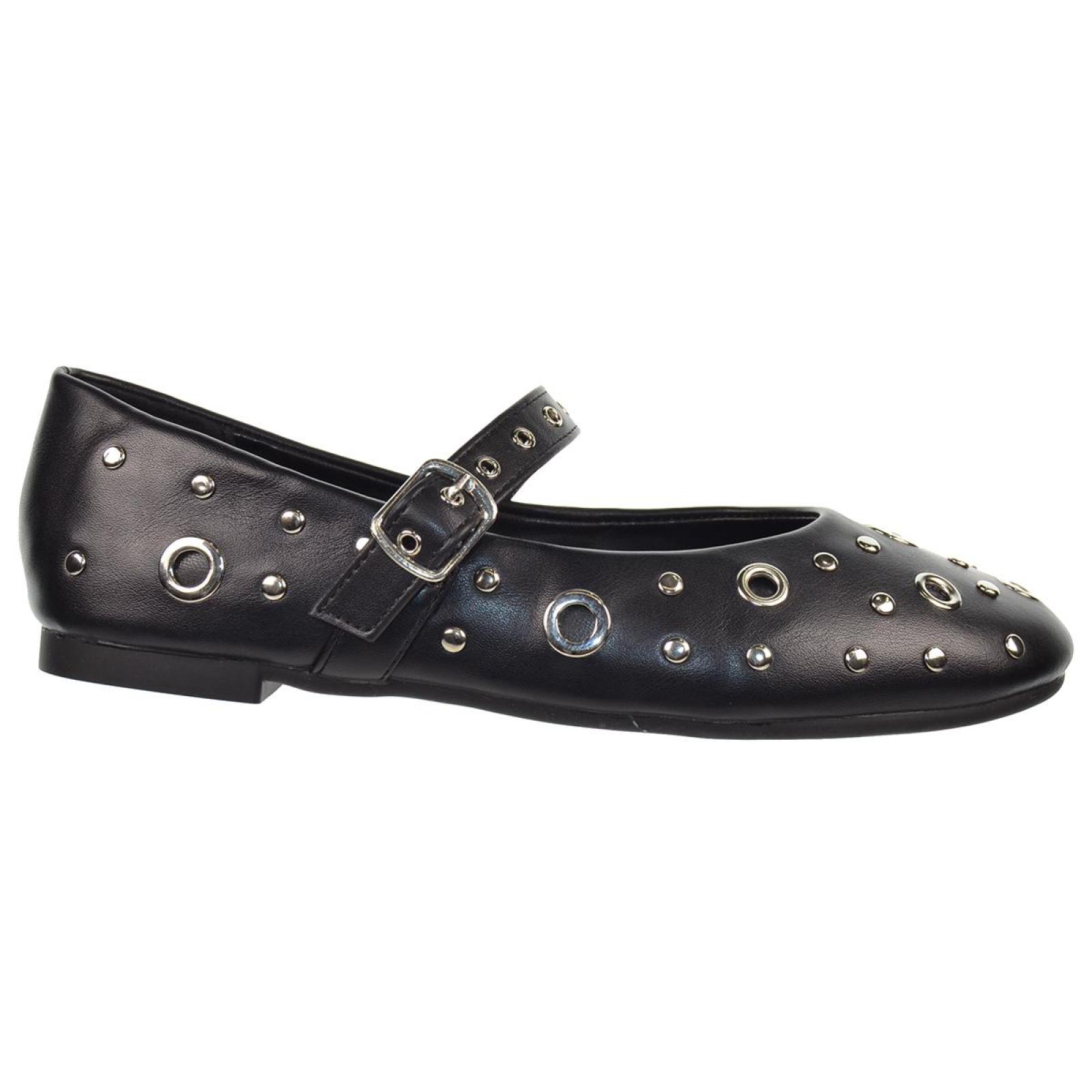 Isteria 526 Zapato sintético vegano con remaches. Cierre con hebilla regulable. Plantilla acolchada muy confortable. Suela de goma antideslizante muy flexible.Un diseño que no puede faltar en tu outfit.