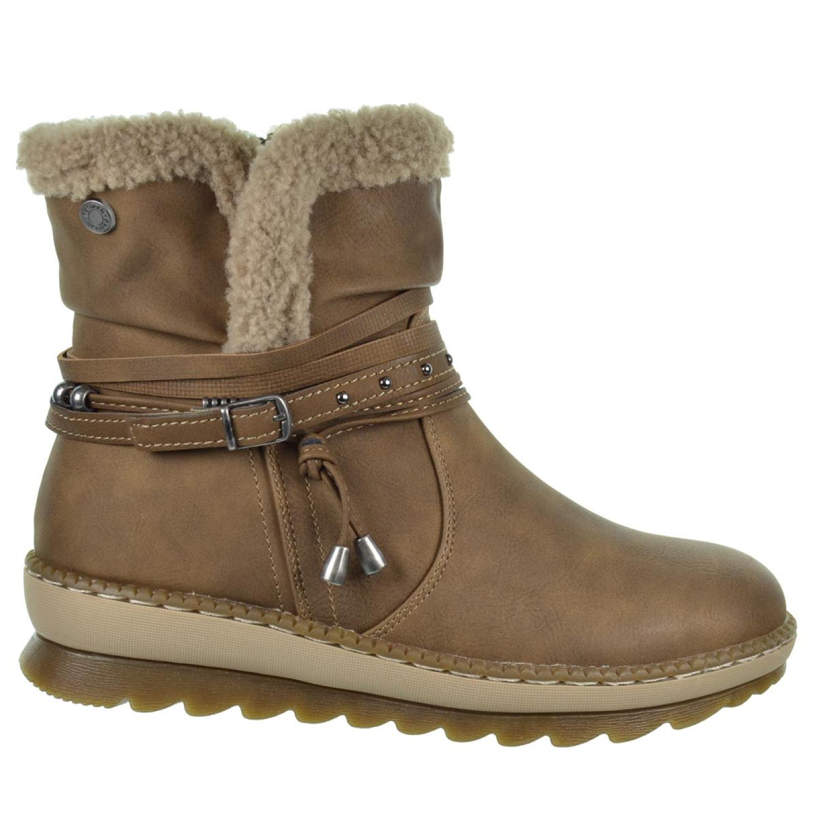 con interior de suave forro de pelo que aporta calidez y plantilla textil. Cierre con cremallera lateral interior para facilitar su calce. Suela con cuña de goma antideslizante. Tus botines para los días fríos de invierno.