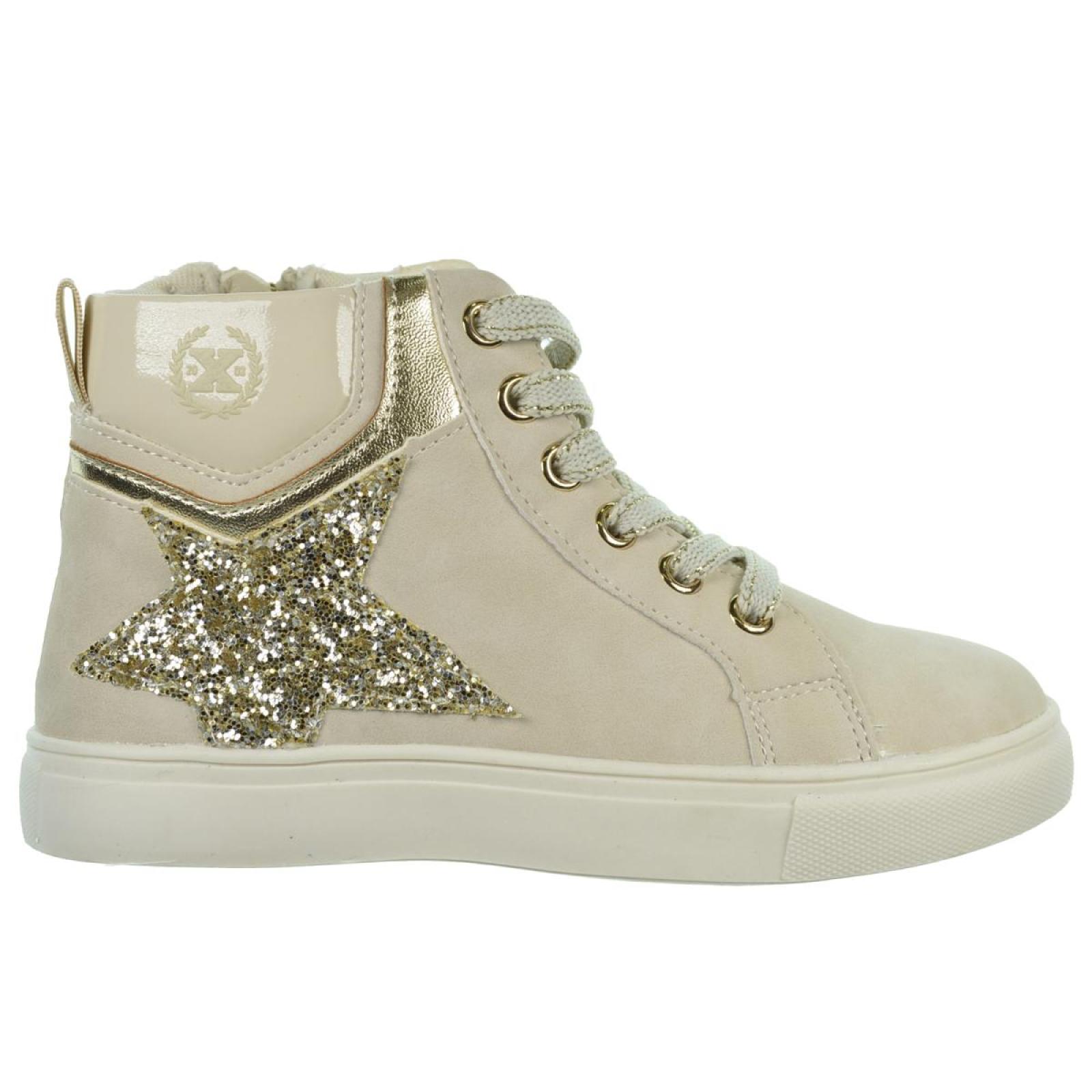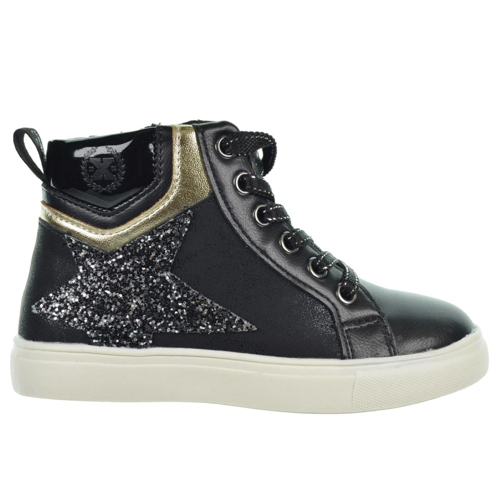 Xti Kids 151294 Botín en sintético de alta calidad. Cierre en cordones ajustables, forro interior textil, cremallera lateral interior y plantilla extraíble en sintético muy confortable. Adornado con una estrella en glitter. Suela gruesa de goma antideslizante. . Este modelo ha obtenido el certificado vegano por la organización mundial PETA (Organización de los derechos de los animales).